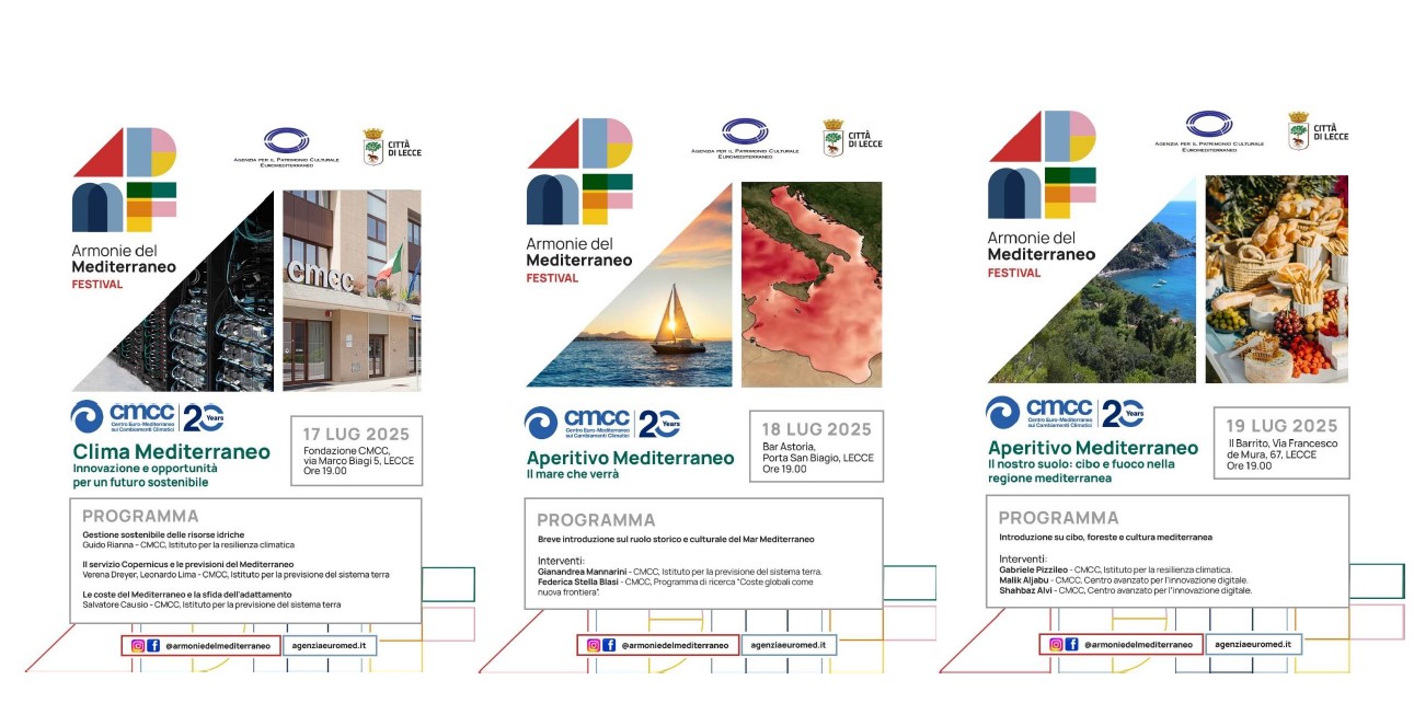 Nel cuore dell’estate leccese, mentre la città si apre al dialogo tra culture con la rassegna Armonie del Mediterraneo – promossa dal Comune di Lecce con il supporto scientifico e organizzativo dell’Agenzia per il Patrimonio Culturale Euromediterraneo – il tema della sostenibilità ambientale assume un ruolo di primo piano grazie a tre appuntamenti organizzati dalla Fondazione CMCC – Centro Euro-Mediterraneo sui Cambiamenti Climatici. In un programma che intreccia arti, pensiero e cittadinanza attiva, la voce della scienza si inserisce come elemento fondamentale di consapevolezza collettiva, offrendo strumenti per comprendere le trasformazioni in atto e immaginare un futuro possibile per il Mediterraneo.